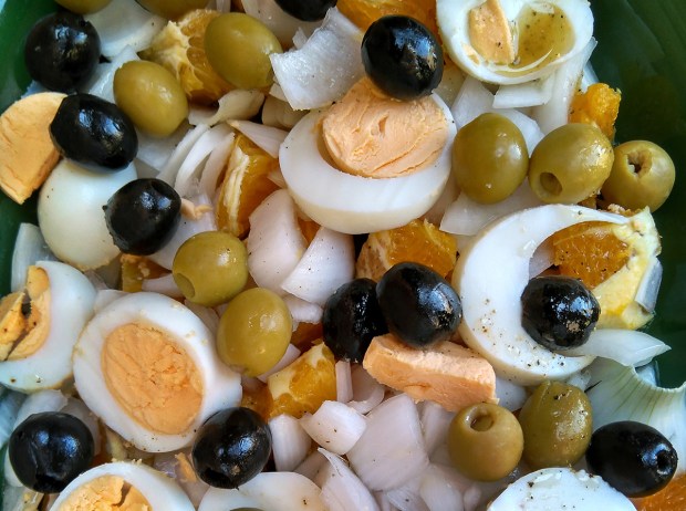 • L’amanida de taronja o «remojón andaluz» és un plat d’orígen àrab, típic d’Andalusia i que es prepara especialment a Granada, Córdoba i Jaén. De fet, la recepta bàsica consisteix estrictament de taronja amanida amb oli i sal, i poden afegir-s’hi nombrosos ingredients – com en el nostre cas- , essent molt habitual el bacallà dessalat i esqueixat.