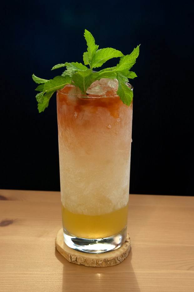- Aquesta és una de les moltes versions de “rum swizzle”, en aquest cas amb brandy de poma i xarop d’agave.